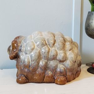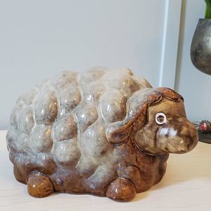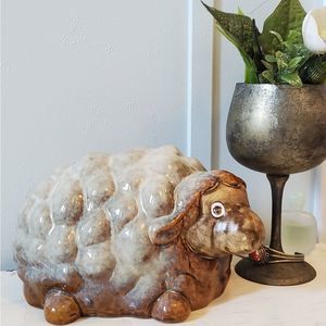This molded porcelain lamb or sheep is adorable with his painted on smile and dainty little eyes. It would make the perfect addition to any nursery or children's bedroom! Like New condition.