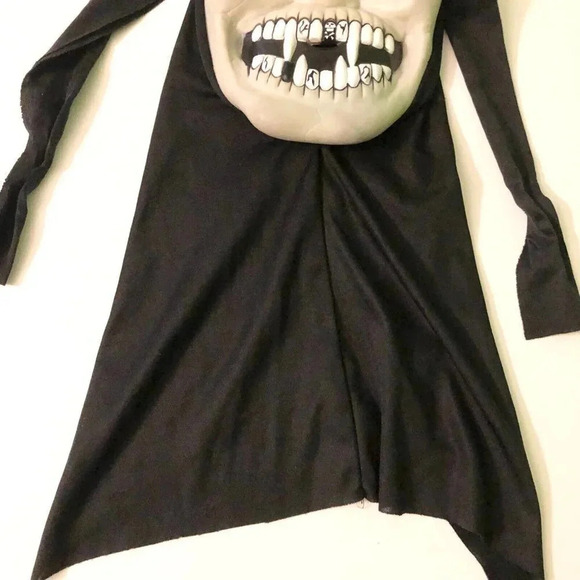 This mask is pre-owned and in used condition. It has stains and marks on it. There is a hole in the back of the hood, right next to the hanging tag. It has been tested and it glows in the dark. Please see all photos for exact item.