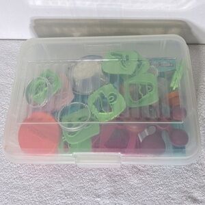 A vibrant set of easy bake oven baking tools in a variety of colors. Includes cutters and decorating tools.