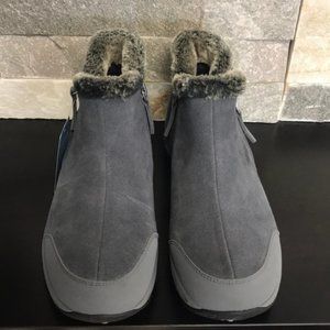 Dual side zipper closure with soft textile and faux-fur linings with memory foam cushioned footbed.