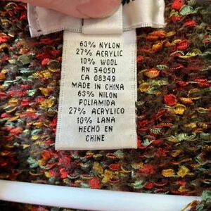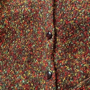This sweater has the most beautiful colours that shimmer in sunlight. It has a simple style with three buttons down the front. This sweater will go with any colour in your closet.