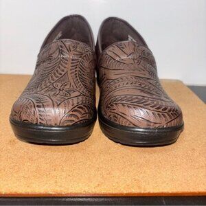 Easy Street Women’s 8W Brown Embossed Cushioned Sole 2” Heel Slip Resistant