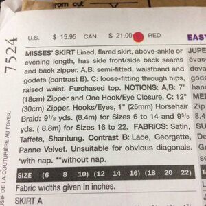 Pattern Info: Please See Photos of Back for Fabric and Notions Requirements.