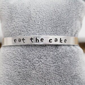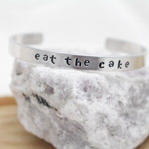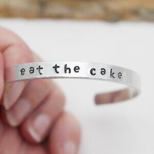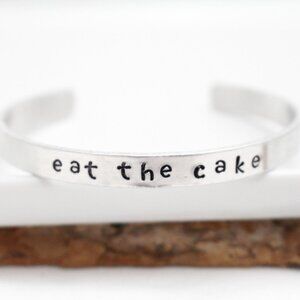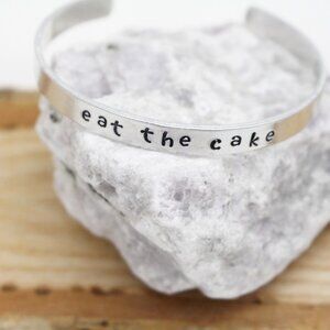 Eat The Cake - Hand Stamped Anodized Aluminum Bangle - Adjustable