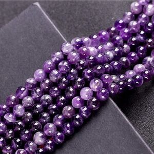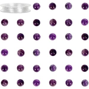 Package and Size- 100pcs amethyst stone loose beads with crystal stretch cord, stone beads diameter: 8mm; Hole diameter: 1mm; Crystal stretch cord: approx. 10m.