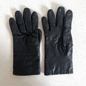 Lined leather driving gloves from Eaton’s. Lined with wool. Made in Hungary. In good used condition. These gloves have plenty of life left. 9x3.5 inches.