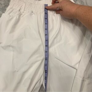 These pant my daughter used for hip hop dance, they have a slight shine / slippery feel to them. No rips or stains noted. Size medium runs a small mediumsi I marked them as a small so please see measurements.