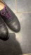 Elegant black leather oxfords with striking purple laces. Ideal for a sophisticated look.