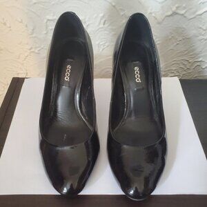 Ecco Womens Shape 75 Leather Round Toe High Heel Shoe, Black Patent