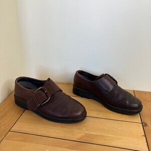 Ecco Brown Leather Oxford Shoes Monk Strap Buckle Vintage Women's EU 38 US 7