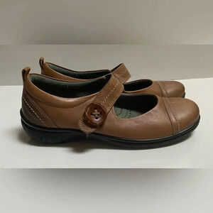 Ecco Glebe Tan Leather Mary Jane Hook Loop Strap Sandal Shoes Sz 38