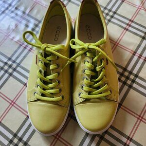 Ecco Leather Sneakers In Lime Yellow Size 39 Extra Width LIKE NEW!