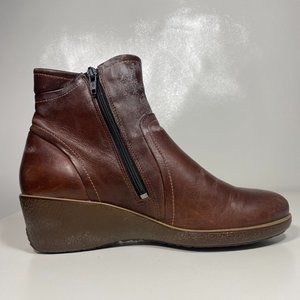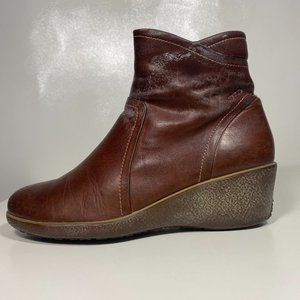 Ecco Women Boots Ankle High Wedge Zip Up Leather Brown Sz 7