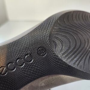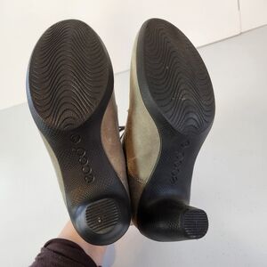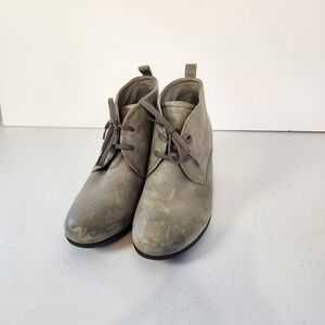 Ecco Women’s Ankle Boots Lace Up Gray Leather Block Heels Shoes Size 38 US 7 7.5