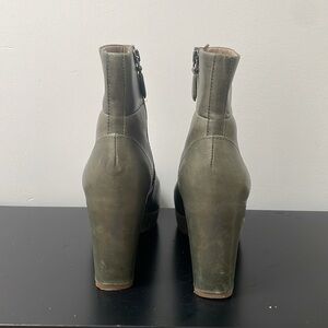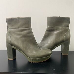 Ecco shoes platform leather boots dark green olive chunky heel booties sz 8.5