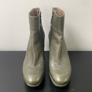 Ecco shoes platform leather boots dark green olive chunky heel booties sz 8.5
