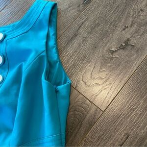 Very pretty flattering on the tummy and ever so subtle flare perfect for pin up photos . The buttons on the chest are lovely .