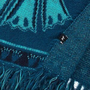 With an oversized lotus flower motif, this winter scarf has a nod to warmer weather. Finished with a long fringe trim to add texture to a simple outfit.