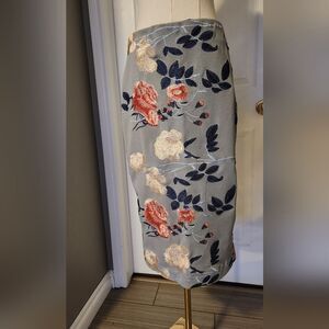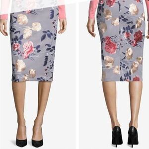 Eci New York Floral Embroidered Midi Knee Length Pencil Skirt