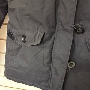 This coat is in near mint condition the fur trim is beautiful and soft the exterior is still vibrant black but there is one repair on the inside of one sleeve as pictured you cannot notice when worn I think this is from early 2000’s