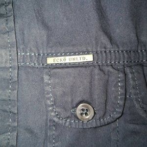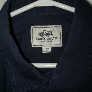 Ecko Unltd casual long sleeve button down shirt. Men's medium. Blue cotton. Good condition. Previously enjoyed.