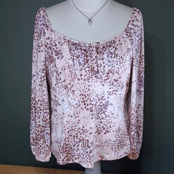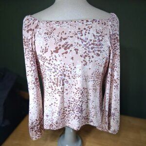 Eclair Scoop Neck Blouse - Size Medium - Pink, Purple, White Patterned