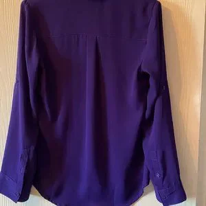 Eclipse long sleeve, button-up blouse, two small front pockets. Pit to pit-18 inches, shoulder to front hem-23.5 inches. Back hem is slightly longer. Excellent condition. 100% polyyester. Lightweight chiffon-like material.
