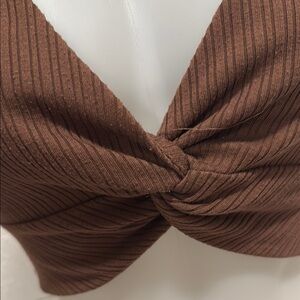 Stylish ribbed crop top with a twist front. Perfect for casual outings. Perfect condition. Size m.