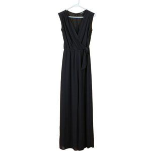 Eclipse Faux Wrap Jumpsuit Sash Waist Lined Small Black Sleeveless Formal D153