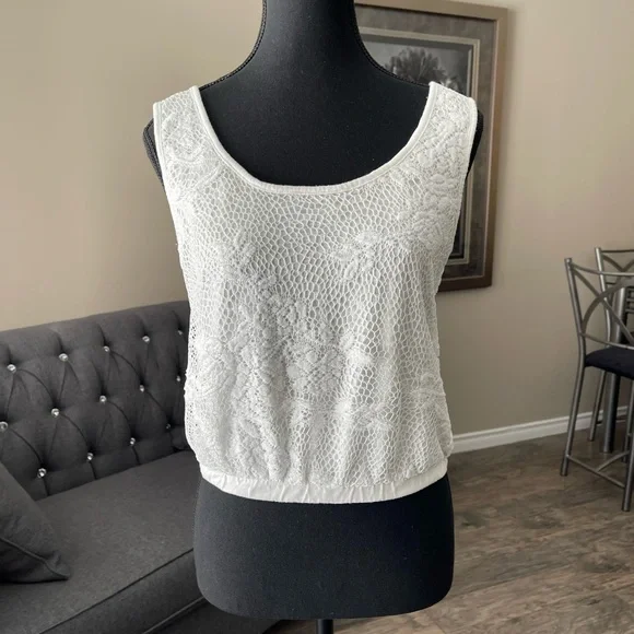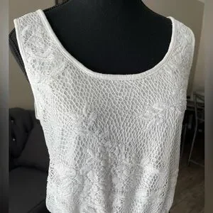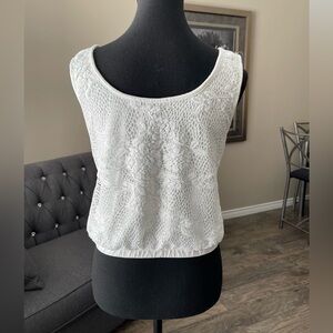 Tank top with floral lace overlay. Elastic waist. In good used condition.