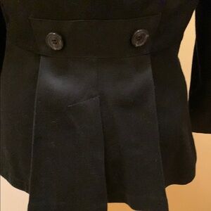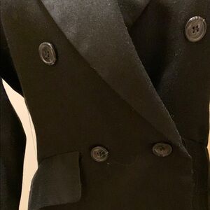 Elevate your wardrobe with this classic black double-breasted blazer. Perfect for both professional and casual settings, this jacket offers a timeless look. Its sleek design ensures a flattering fit.