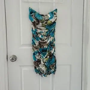 Strapless with a sweetheart neckline Ruched body Built-in bra Size small