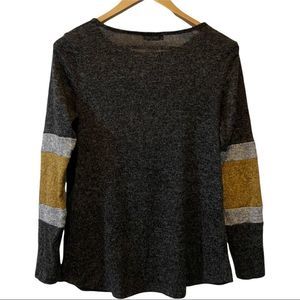 Eclipse lightweight long sleeve sweater crew neck grey with yellow arm band S