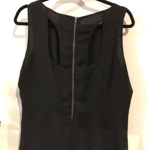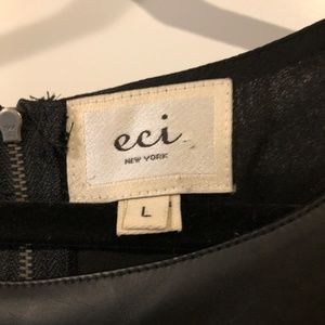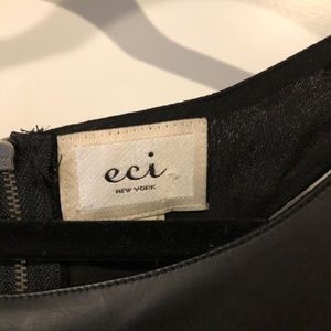 Faux leather sleeveless tunic. Front has laser cut-out pattern.