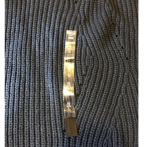 Eco by Design openwork cropped hooded sweater new with tags. Marine blue, cozy ribbed recycled cotton blend knit, slouchy fit. Marked size L. All measurements are approximate and taken with the garment laying flat : Armpit to armpit 22" Total length 17" This item comes from a smoke free, pets friendly home. Recycled bags/box used when possible. Please, let me know if you'd like any additional pictures and/or measurements or other info. Thanks for watching!