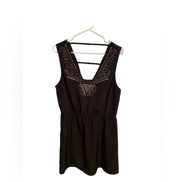 Sleeveless midi dress. Fashion studs on frontside, elastic waistband with no pockets. Fitted top and flare on bottom. No stretch, gently used in good condition. Pit to pit 19.5”