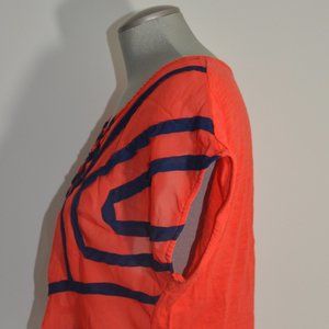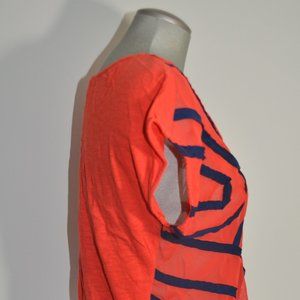 Super funky Ecote Orange with Navy Pattern Sheer front top (back is like a t-shirt style). See pics!