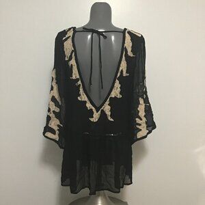 Ecote Semi-Sheer Deep V Back Tunic with Lace Size L