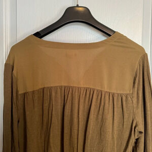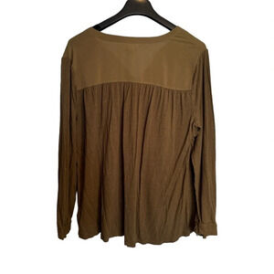 This beautiful olive green blouse from Ecote is in EUC (aside from some minor discolouration, see photos) and features a super soft linen blend material, roll-tab sleeves, and sheer panelling. Size L, see photos for measurements. A gorgeous piece for spring and summer alike.