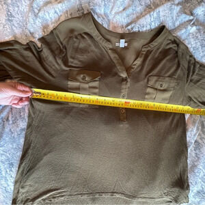 Ecote Urban Outfitters Blouse Size Large Olive Green Roll-Tab Sleeves Utility