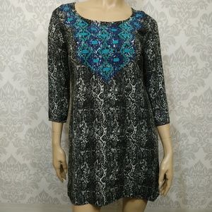 Embroidered Size S Short Shift Very good pre-owned condition, no tears, holes or stains Chest, at underarms: 38.5" Waist: 36" Hip: 39" Length, shoulder to hem: 33" 100% rayon, no stretch