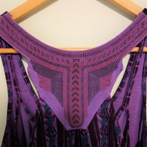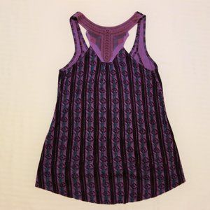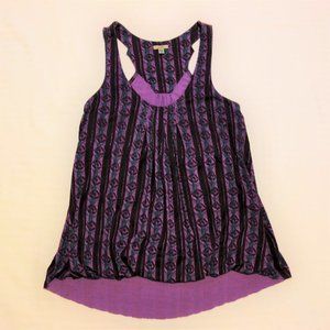 Ecote (Urban Outfitters) racerback tank top in purple with graphic patterns. The back is slightly longer than front. Flowy, boho style. US Size Small.