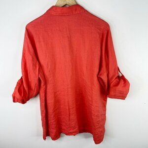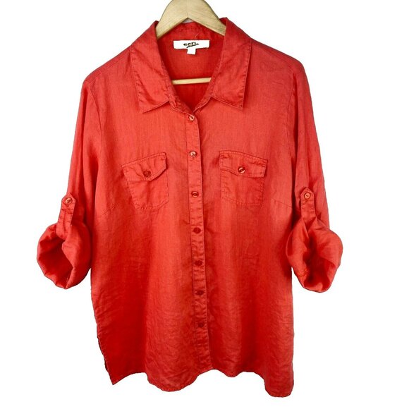 Ecru Blouse Womens Plus Size 18 100% Linen Roll Tab Sleeve Button Front Shirt