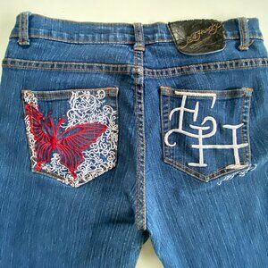 Ed Hardy Blue Boot Cut Jeans with Colorful Embroidery