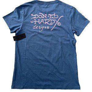 Ed Hardy Blue Graphic Tee with Snake and Skull Design
