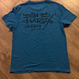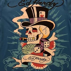 Ed Hardy "Classic Skull Logo" Men's T-Shirt. Blue. Medium