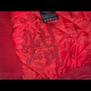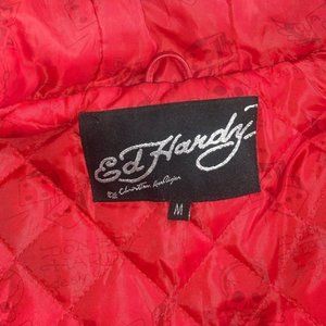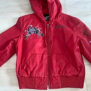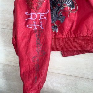 Vintage Ed Hardy Authentic Red Leather Hooded Jacket