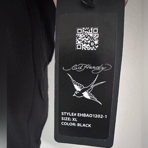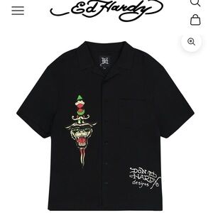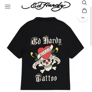 Ed Hardy Love Kills Slowly Woven Black Short Sleeve Button Up Camp Shirt XL