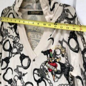 Ed Hardy RARE Vintage Y2K Hoodie Handcuffs Tattoo Crystal Knit Top Sweater L