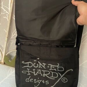 Dynamic Ed Hardy bag with striking skull and tattoo motifs. Bold colors make a statement.